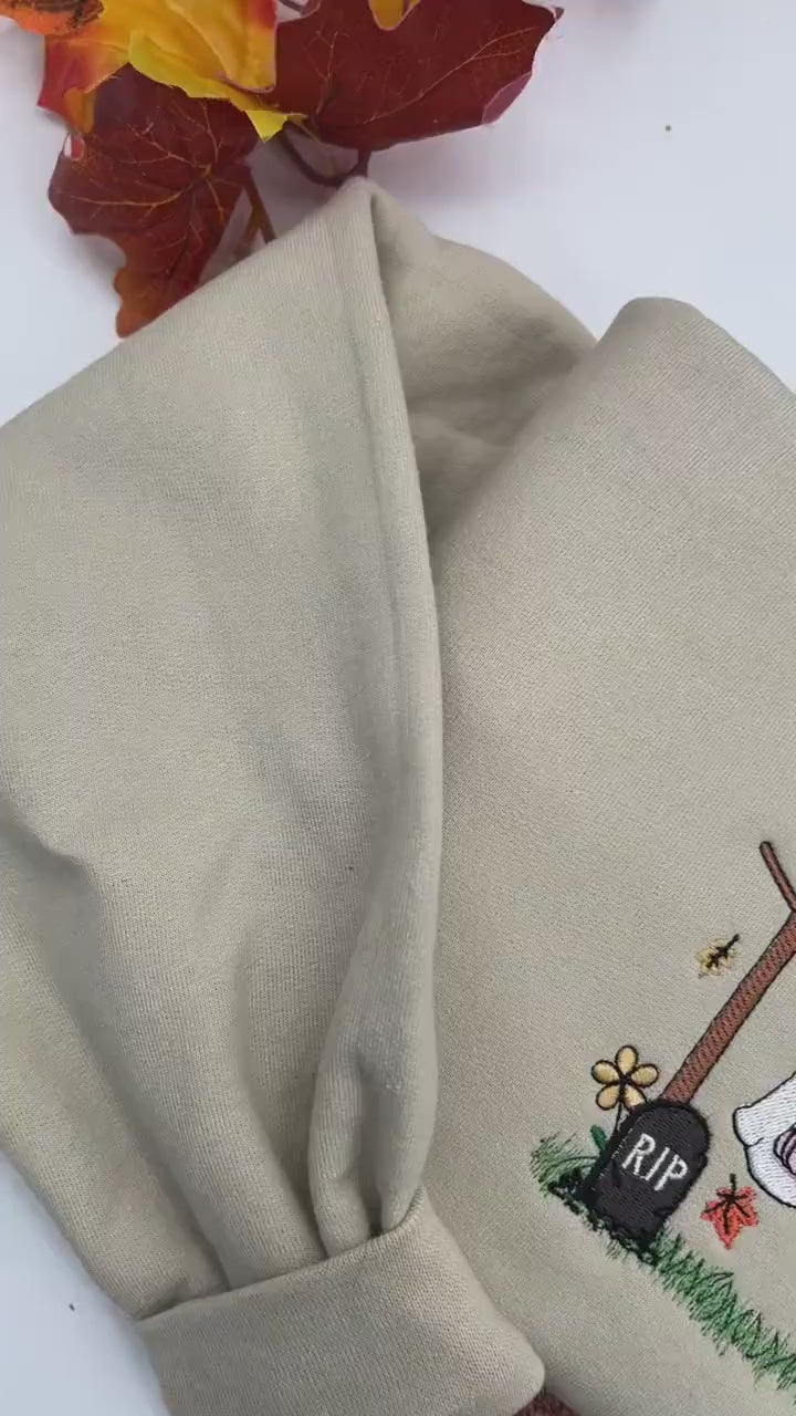 Halloween Ghost Clothesline Embroidered Sweatshirt – Cute Spooky Season Pullover